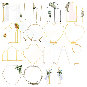 웨딩 아치 키트 파티 장식용 흰색 풍선 화환이있는 골드 메탈 스탠드 우아한 웨딩 배경